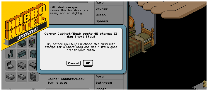 Nesta sexta-feira (14/11), o Habbo Origins abriu uma nova votação no Infobus para decidir os próximos passos do sistema de mobis temporários. Apresentado em outubro como teste, o recurso permite “alugar” mobis usando Selos para experimentar itens antes de comprá-los.