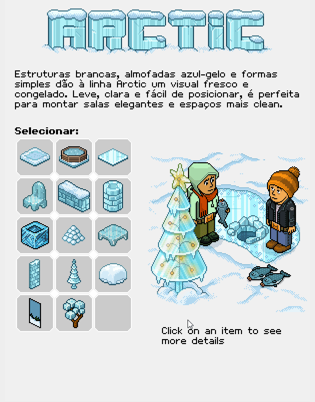 A clássica linha Arctic acabou de chegar ao hotel; fresquinha, congelada e perfeita pra montar aquele quarto com vibe de cabana isolada no meio da tundra Habbiana.