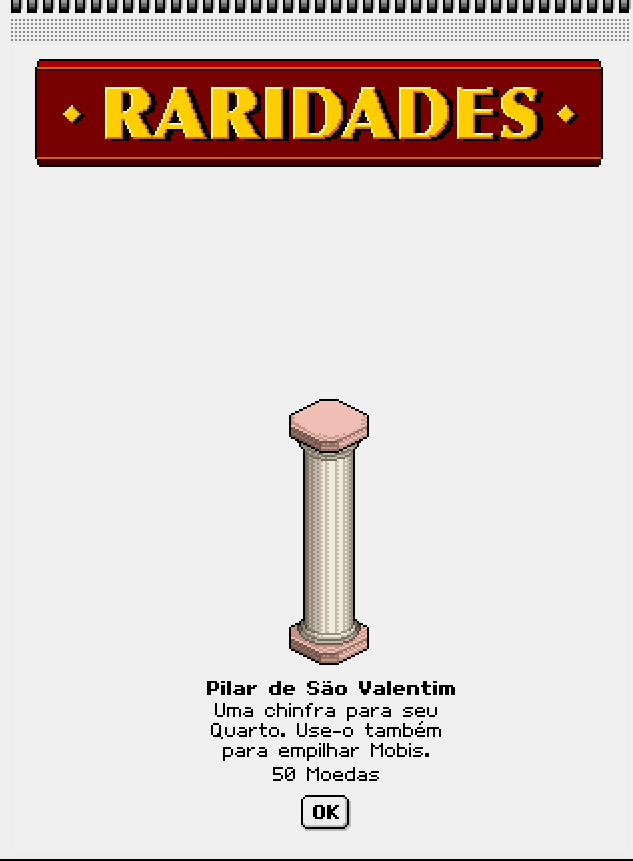 Nesta terça (03/02), o Habbo Origins recebeu um novo mobi Raro: Pilar de São Valentim chegou ao Catálogo por 50 moedas.