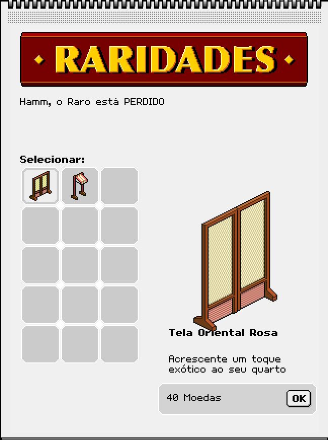 Nesta terça (17/02), o Habbo Origins recebeu um novos mobi Raros: Tela Oriental Rosa e Toldo Rosa chegou ao Catálogo por 40 a 45 moedas.