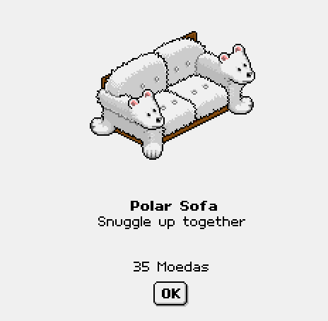 Nesta terça-feira (30/12), o raro Sofá Polar chegou ao Catálogo do Habbo Origins por 35 moedas.Esse mobi tão aguardado marca o último lançamento de raro de 2025.